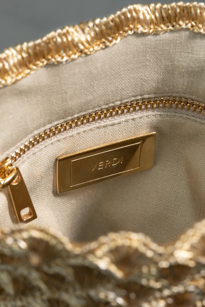 Cuidados:Expresiones tejidas a mano que celebran la esencia de Colombia, su diversidad cultural y mano de obra tradicional. Verdi reinventa la clásica mochila colombiana en una bolsa tipo cubo de fibra y metal. Construida cuidadosamente por maestros tejedores, cada pieza tarda hasta 4 días en completarse y entrelaza hilos plateados con fibras de plátano y fique para luego realzarlos con detalles finamente obtenidos.