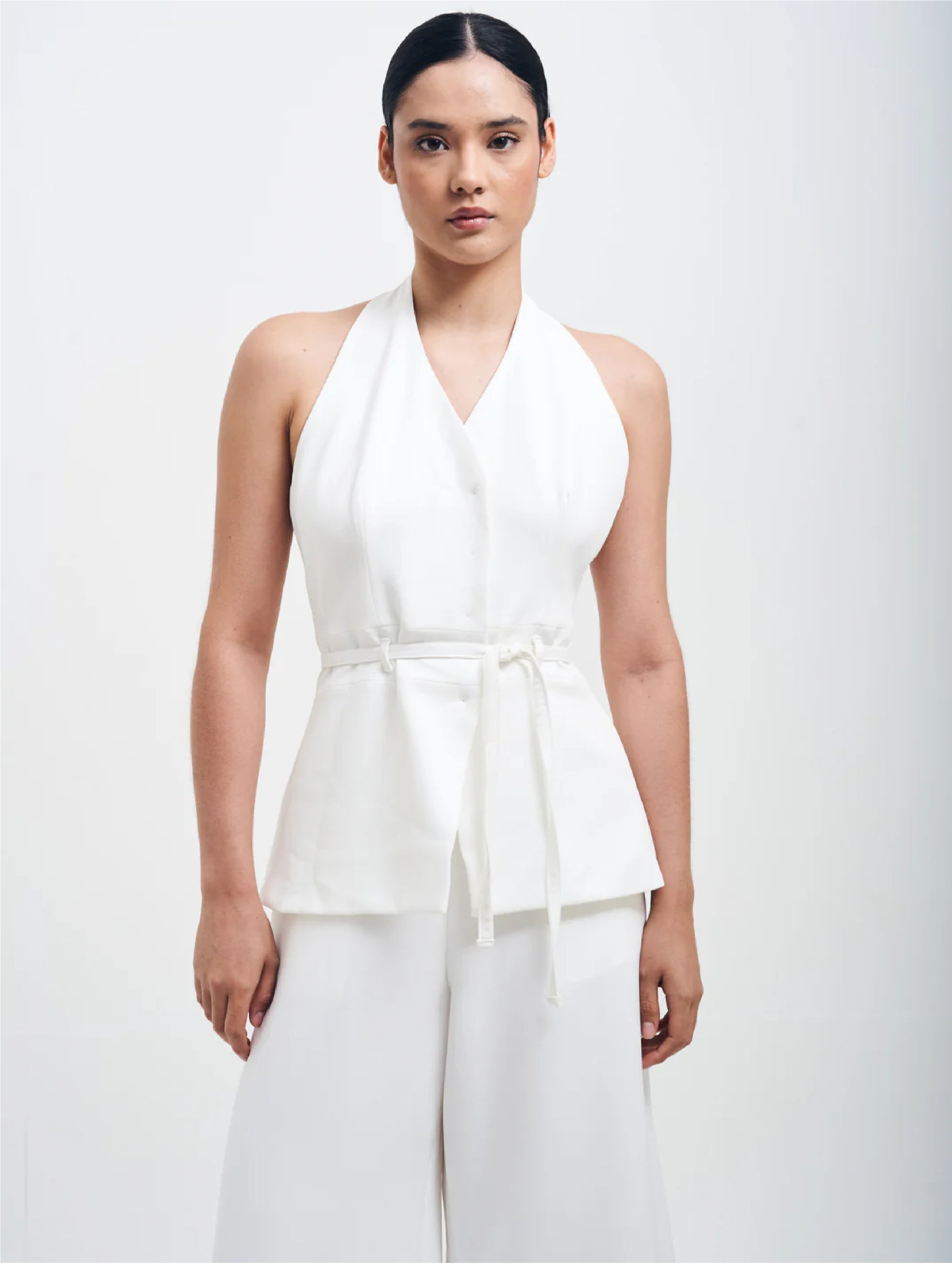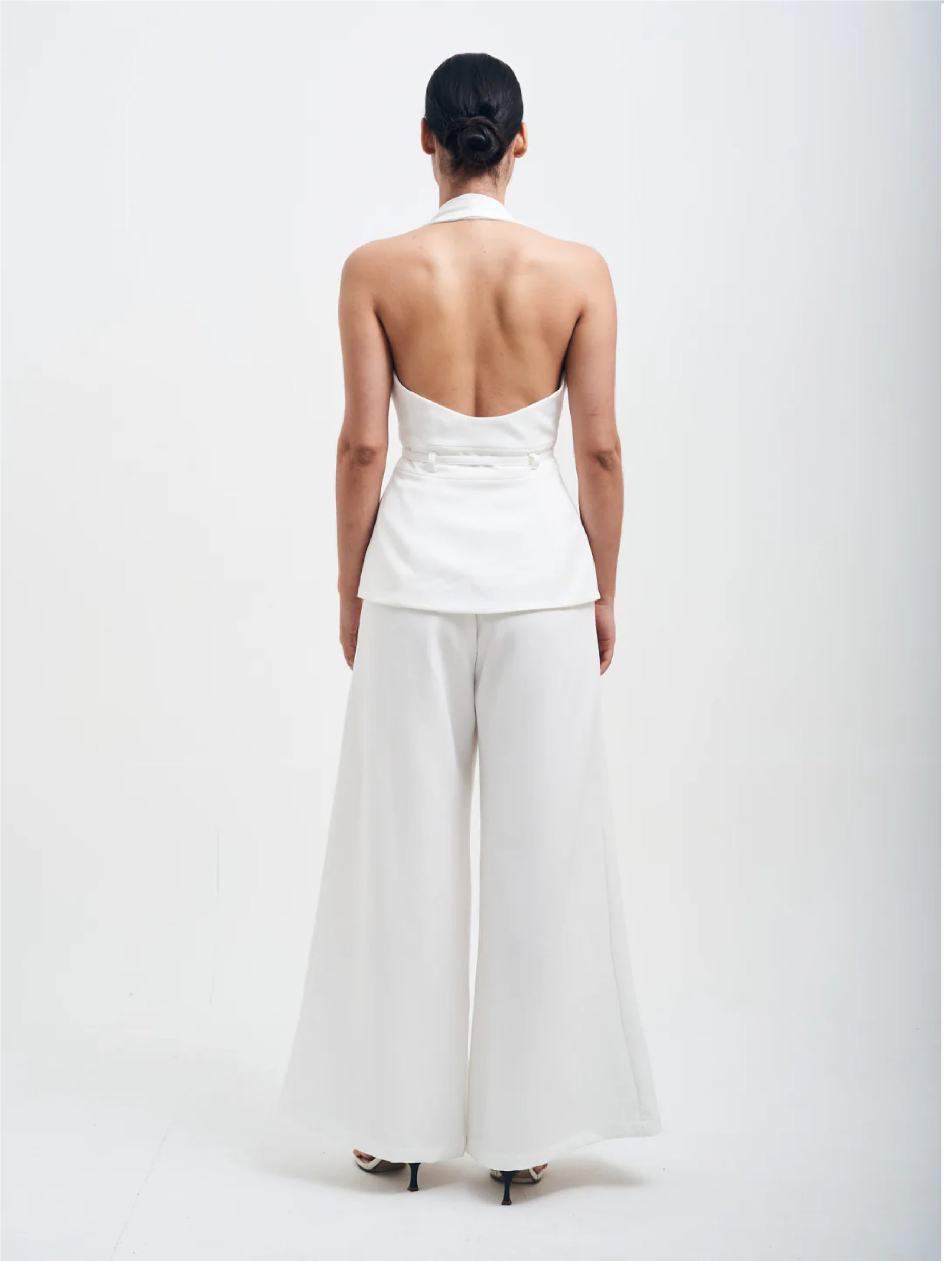 El set Ofelia, ideal para todas tus ocasiones, compuesto por un chaleco tipo halter y un pantalón palazo.