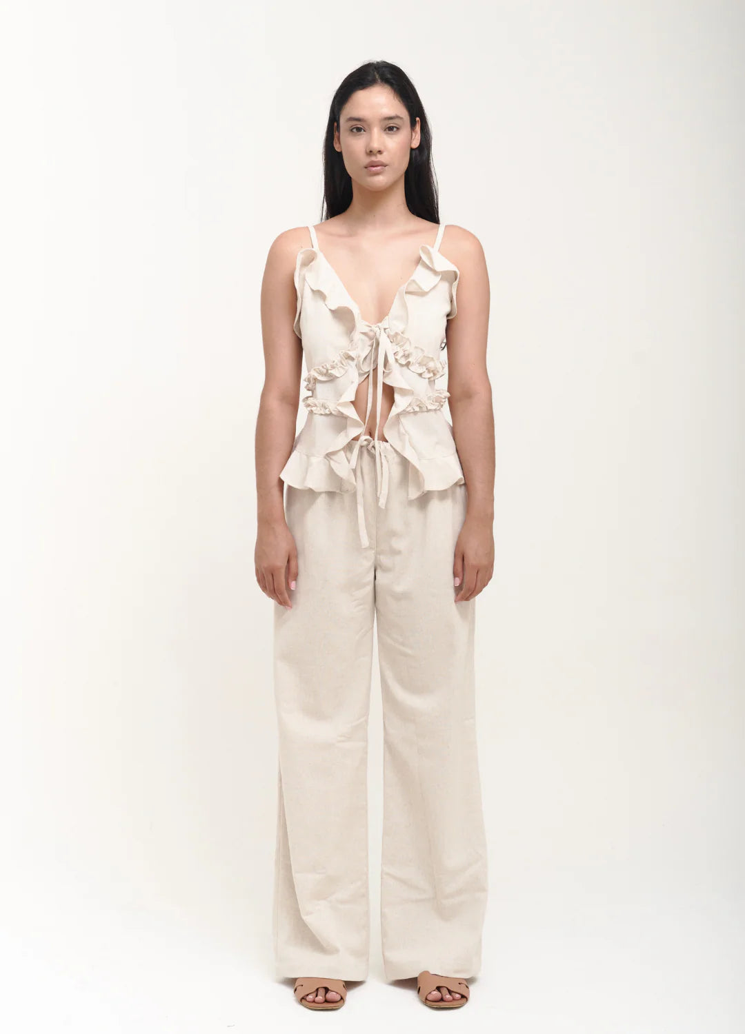 El Conjunto Santander, sus diseños únicos reflejan la elegancia y comodidad de la mujer Matilda, con un pantalón a la cintura encauchado lo hace ideal para cualquier tipo de cuerpo, y su blusa con boleros la esa ideal para cualquier ocasión. Conjunto Santander esta fabricado en lino.