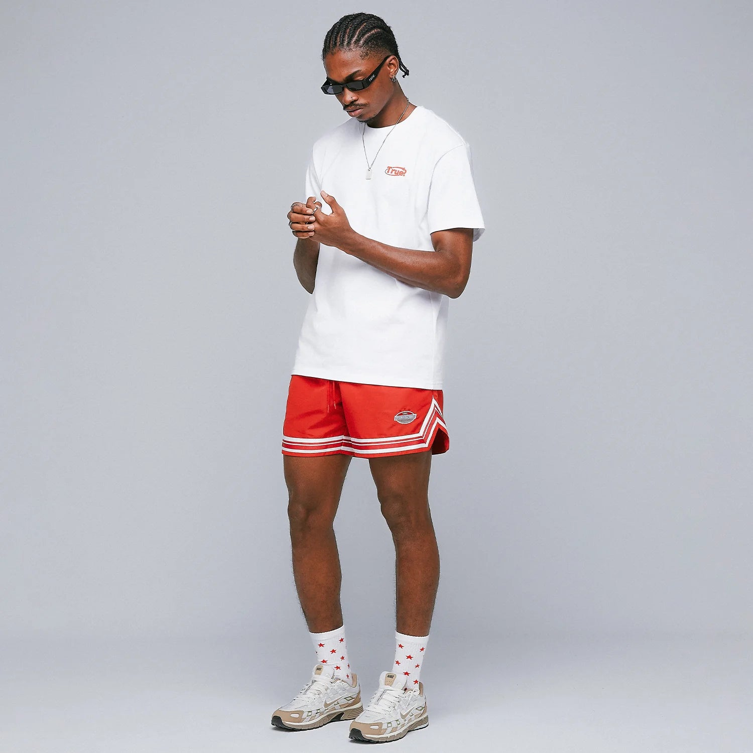 T-Shirt regular fit de color blanco con logo estampado en la parte delantera en un lado y otro en la espalda, en color rojo.