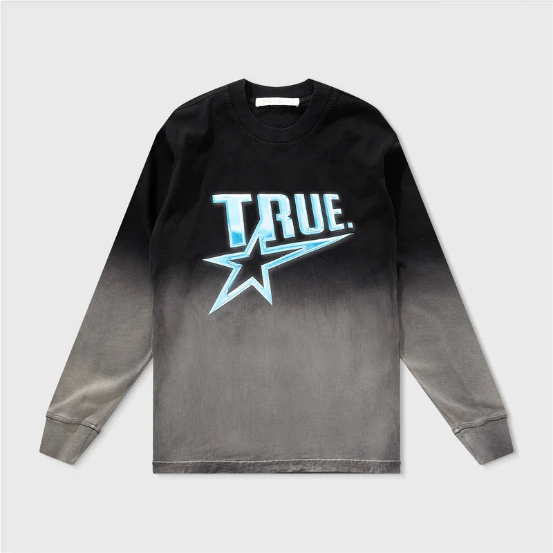 Camiseta manga larga negra con efecto degradado, silueta slim y con el logo estampado adelante.