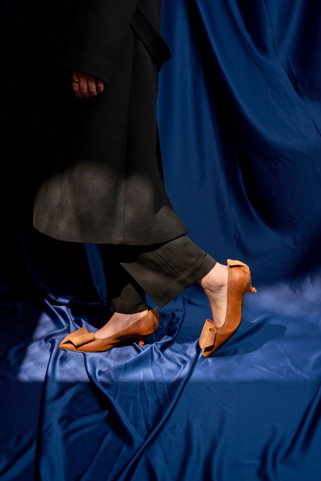 Zapatos “Antiqued leather classics” con las costuras al descubierto y una piel que parece “usada” o “vivida”, recreando unos zapatos de herencia. Esto crea un efecto visual que va más allá del acabado nuevo, una apariencia de uso y desgaste intencionado. Nos da un aire de sofisticación que mezcla lo refinado con lo imperfecto. BAH lo hace de nuevo, para que el producto tenga carácter y que la belleza se encuentre también en la imperfección, dejando un sello propio y una estética reconocible que sirve para posicionar la pieza como algo especial, disruptivo, “cool-girl”.