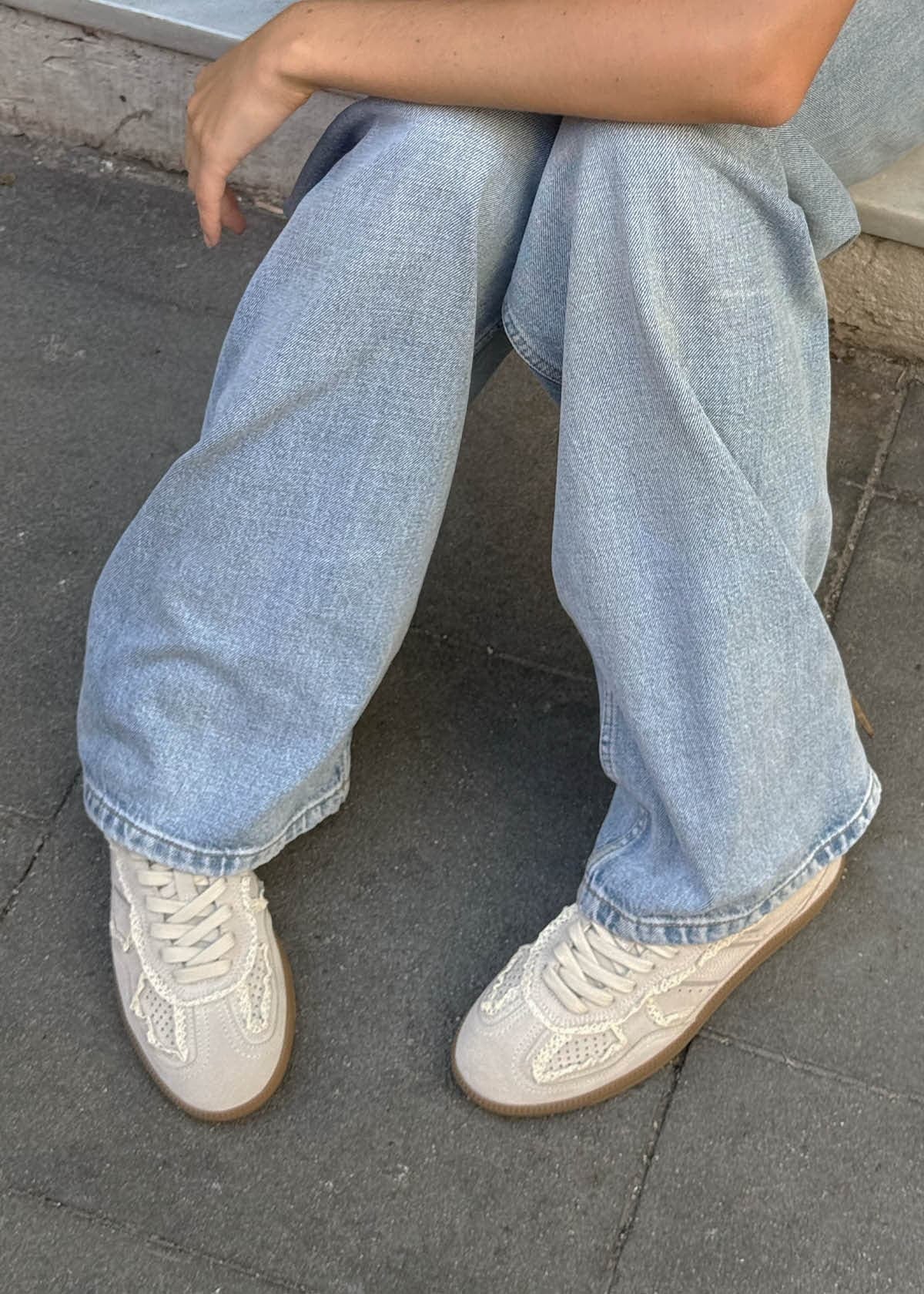 Tenis deportivas de ante color crema con detalles de ganchillo. Los delicados detalles de ganchillo de las Tb.490 aportan un toque romántico a este clásico estilo urbano. Confeccionadas en ante color crema y diseñadas con una silueta baja y suela de goma, estas zapatillas se completan con detalles clásicos, como las costuras a la vista y el logotipo grabado en la lengüeta y los laterales.