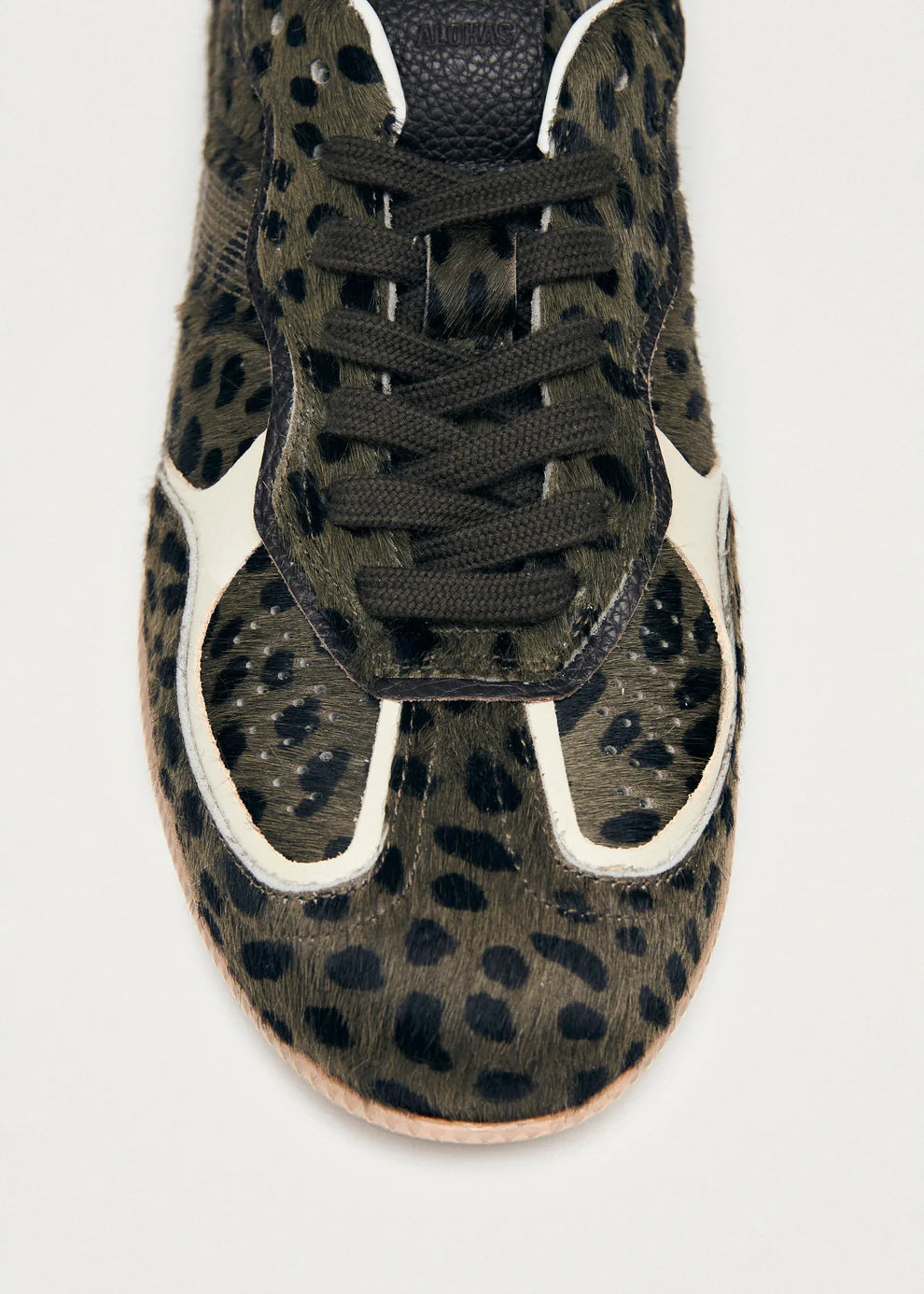 Tenis deportivas de pelo de becerro verde con estampado de leopardo. La Tb.490 Rife, una nueva versión del clásico, está confeccionada en piel de becerro verde con un llamativo estampado de leopardo. Diseñada con una silueta baja y suela de goma, incluye detalles clásicos como tiradores en contraste en el talón, costuras a la vista y el logotipo estampado.