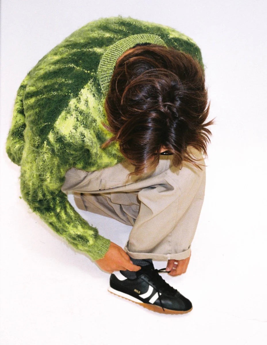 Tenis deportiva de suela fina estilo retro en piel y detalles en contraste de color. Lengüeta de tejido deportivo semitransparente y acolchada con foam visible al corte. Vistas del forro en piel. Cordones ovalados en dos tonos intercambiables. Cuello ligeramente acolchado. Suela flexible de goma/caucho que aporta durabilidad y agarre y mediasuela de phylon que aporta ligereza y comodidad. Cuenta con el nombre del modelo “MILE” en lateral en oro viejo.