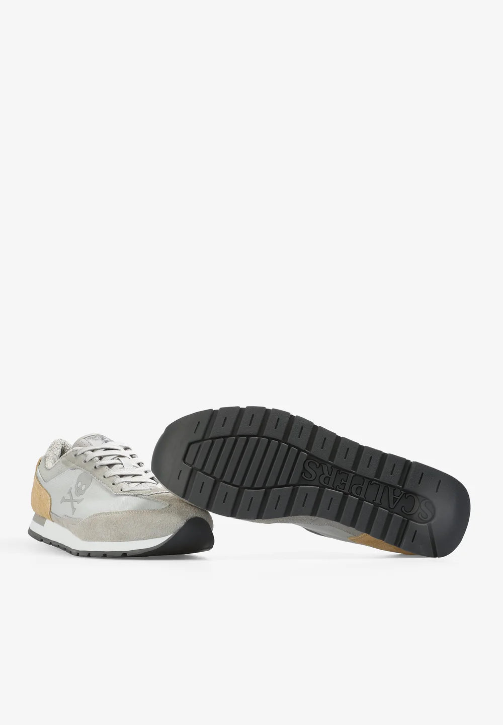 Sneakers confeccionadas en piel y malla. Cierre con cordones a tono, suela de goma y calavera lateral. Talón en ante.