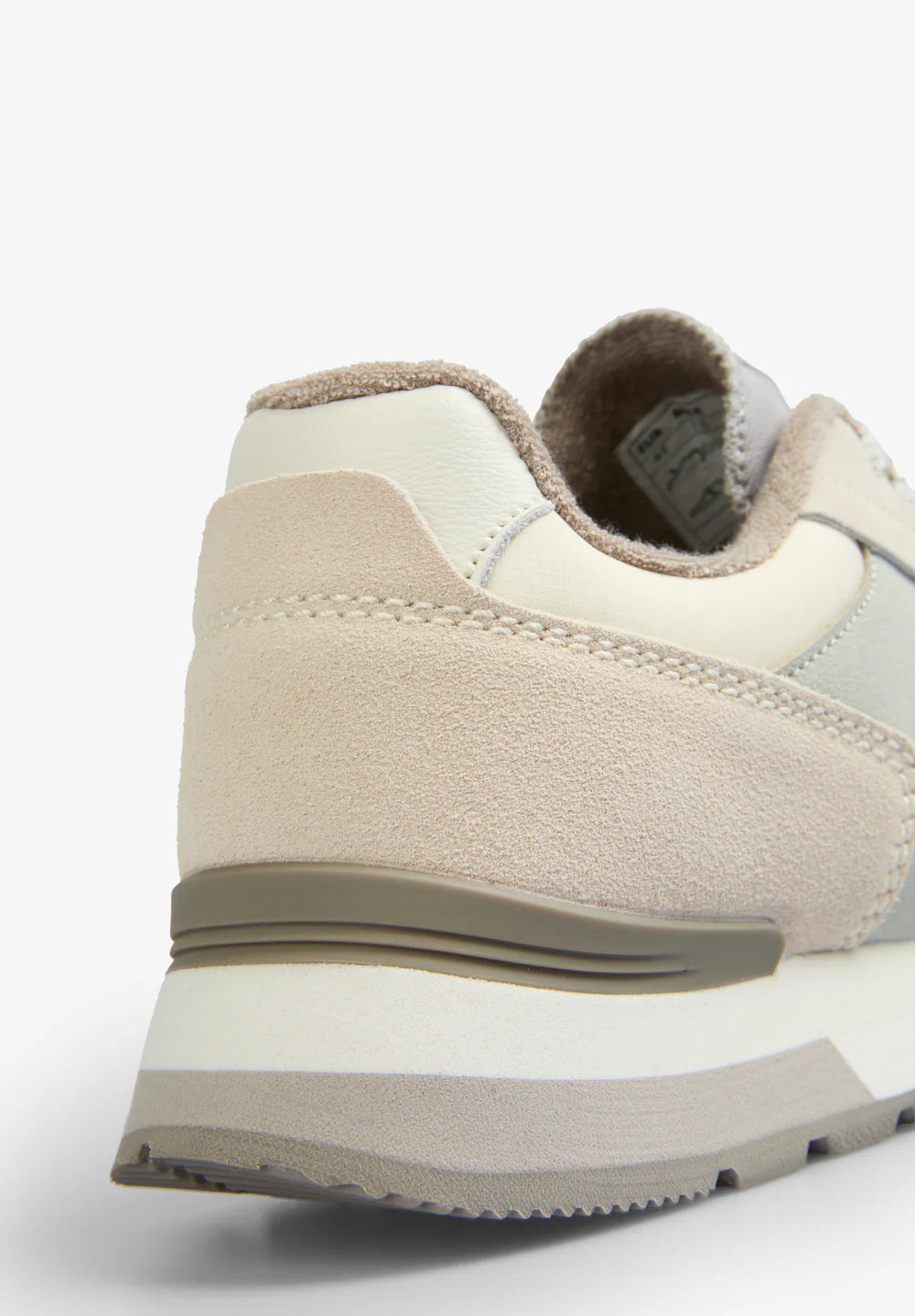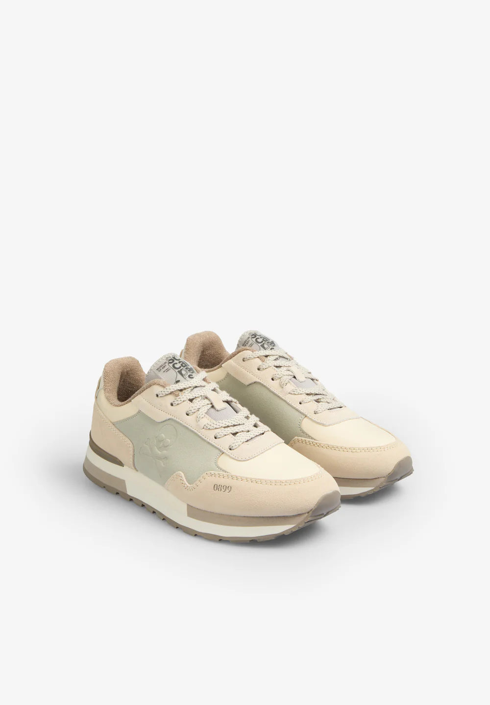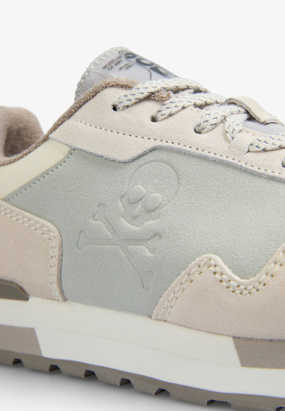 Sneakers confeccionadas en ante y piel. Cierre con cordones a contraste, suela de goma y estabilizador trasero. Calavera lateral en relieve.