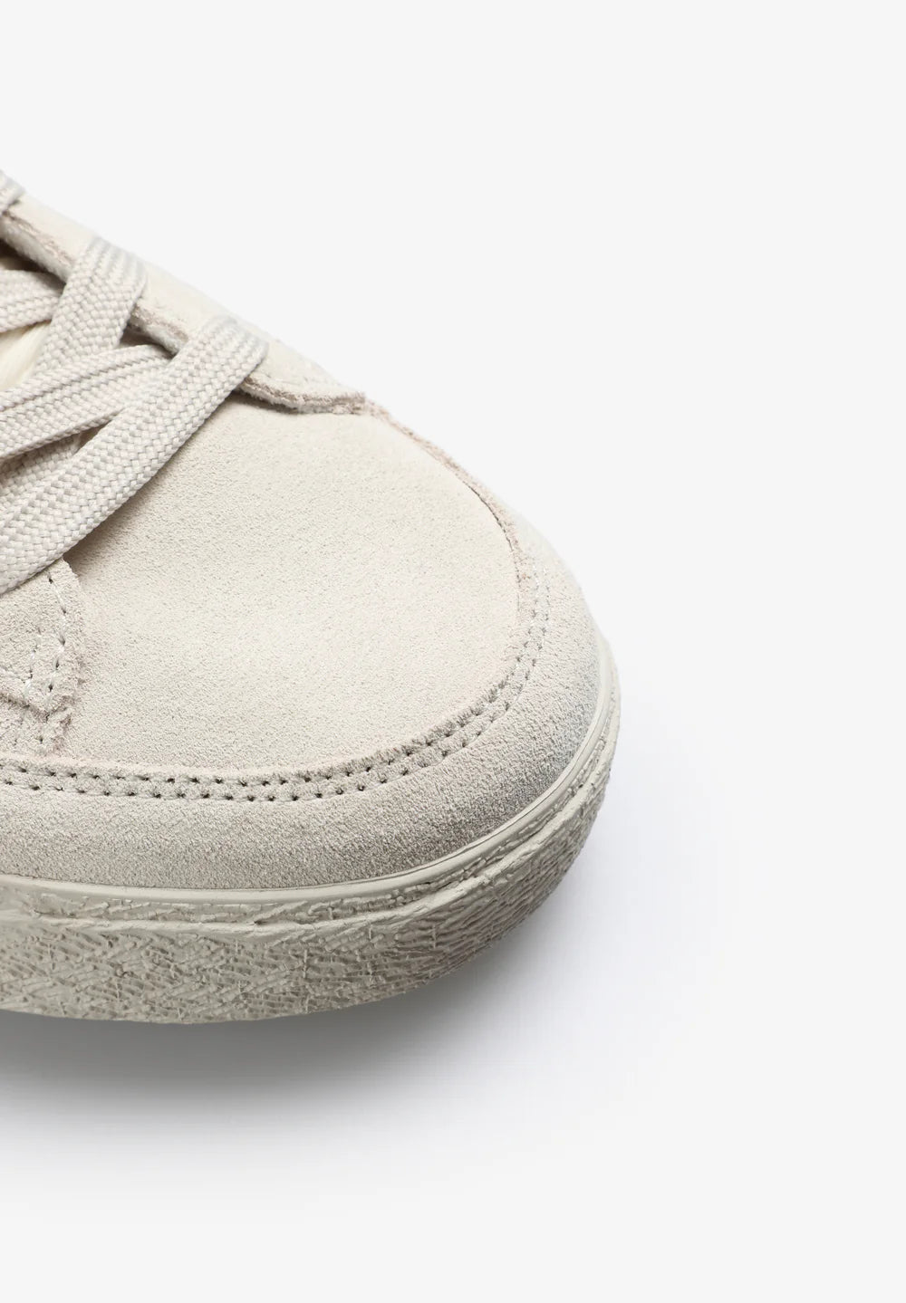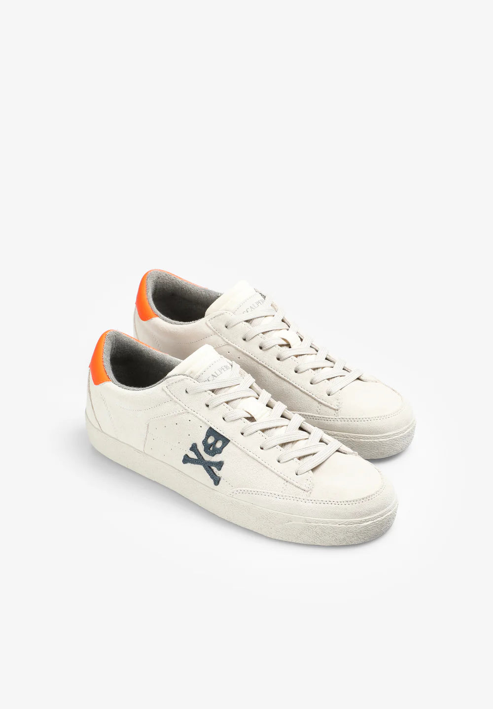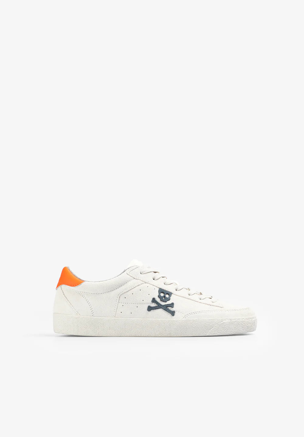 Sneakers bajas con calavera lateral a contraste. Confeccionadas en ante y piel de napa. Cierre con cordones. Suela de goma. Detalle en talón a contraste.