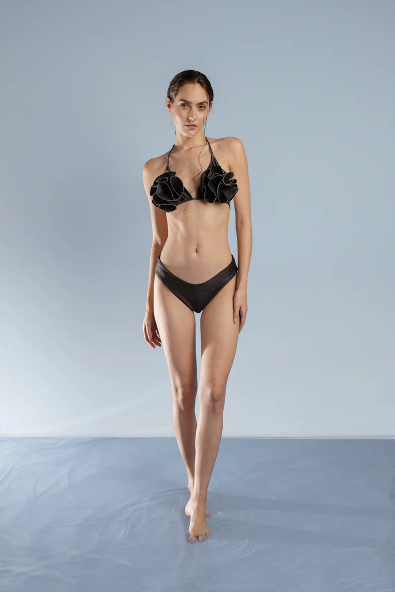El Top Floreale triangular es una expresión de sofisticación y romanticismo. Sus tiras ajustables le permiten adaptarse comodamente al cuerpo de la mujer. Una pieza statement ideal para musas con pechos pequeños. Combínalo a juego con nuestras diferentes opciones para crear un look de playa.