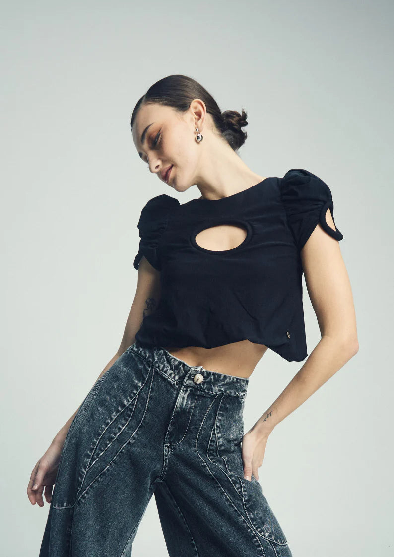 El Gardenia Black Top regresa esta temporada en la versión más esperada: el clásico negro que combina con absolutamente todo. Su diseño se distingue por círculos en las mangas y en el escote, un detalle refinado pero único que le da ese toque inconfundible de Zierra Leona, transformando un básico en una pieza especial.