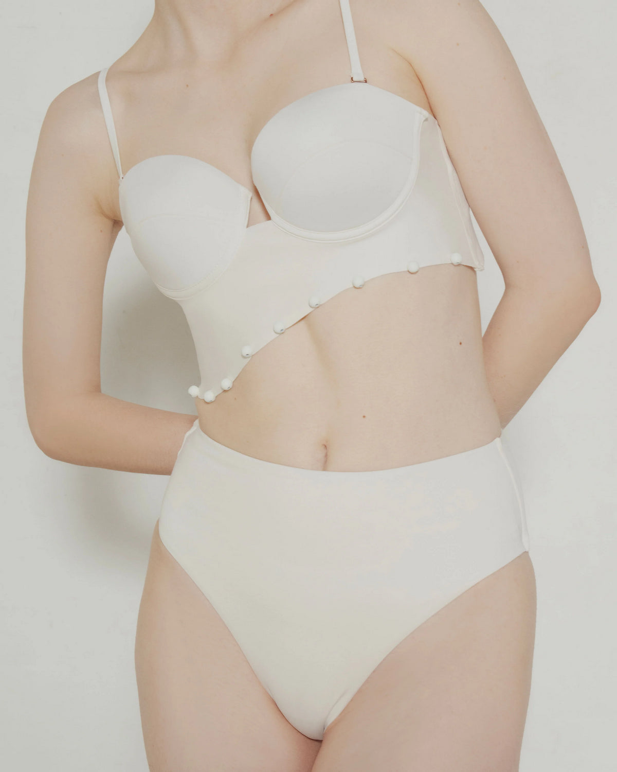 Nuestro crop top combina estructura y encanto. Sus copas prehormadas con aros realzan la silueta, mientras su diseño frontal de líneas orgánicas, adornado con delicadas perlas, añade un toque de sofisticación. Incluye una pieza removible para transformar su estilo según la ocasión. Llévalo más allá de la playa y combínalo con tus pants favoritos para un look elegante y versátil.