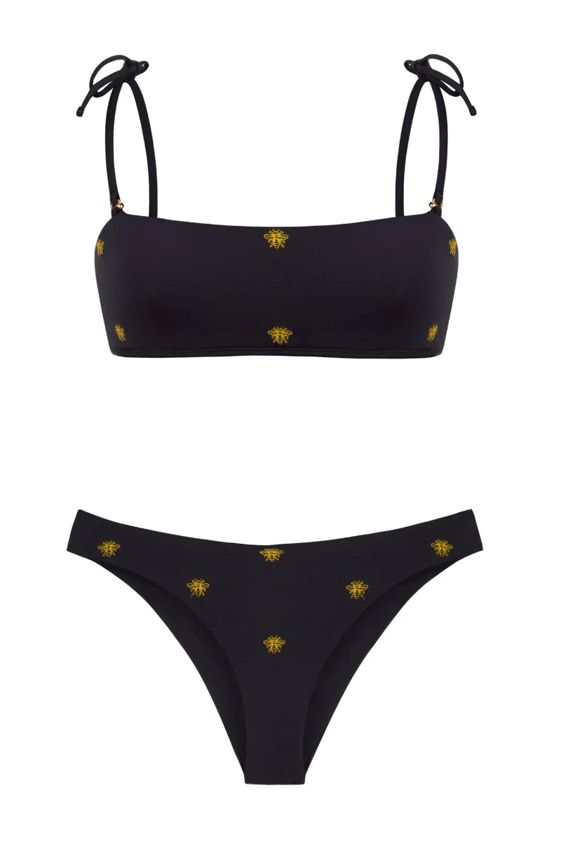 Nuestro top Nina es un top clásico estilo bandeau con soporte interior con varillas. Tiene tirantes extraíbles. La tela está bordada en toda la parte delantera.