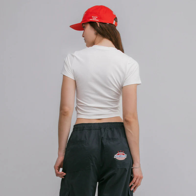 Camiseta color crema cortica y ajustada. Viene con un estampado adelante y silueta slim.