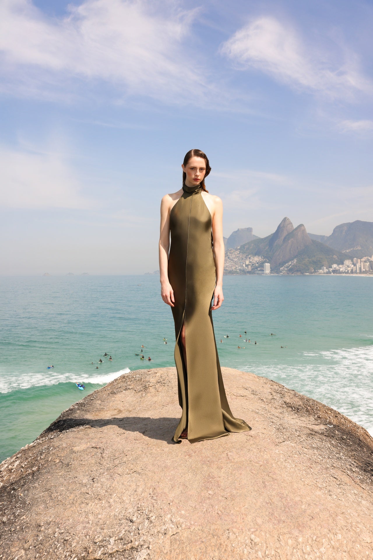 El vestido Clavel es una delicada pieza confeccionada en seda, con escote halter y una caída impecable. Incluye una capa extraíble que te permite combinarlo con versatilidad según la ocasión.