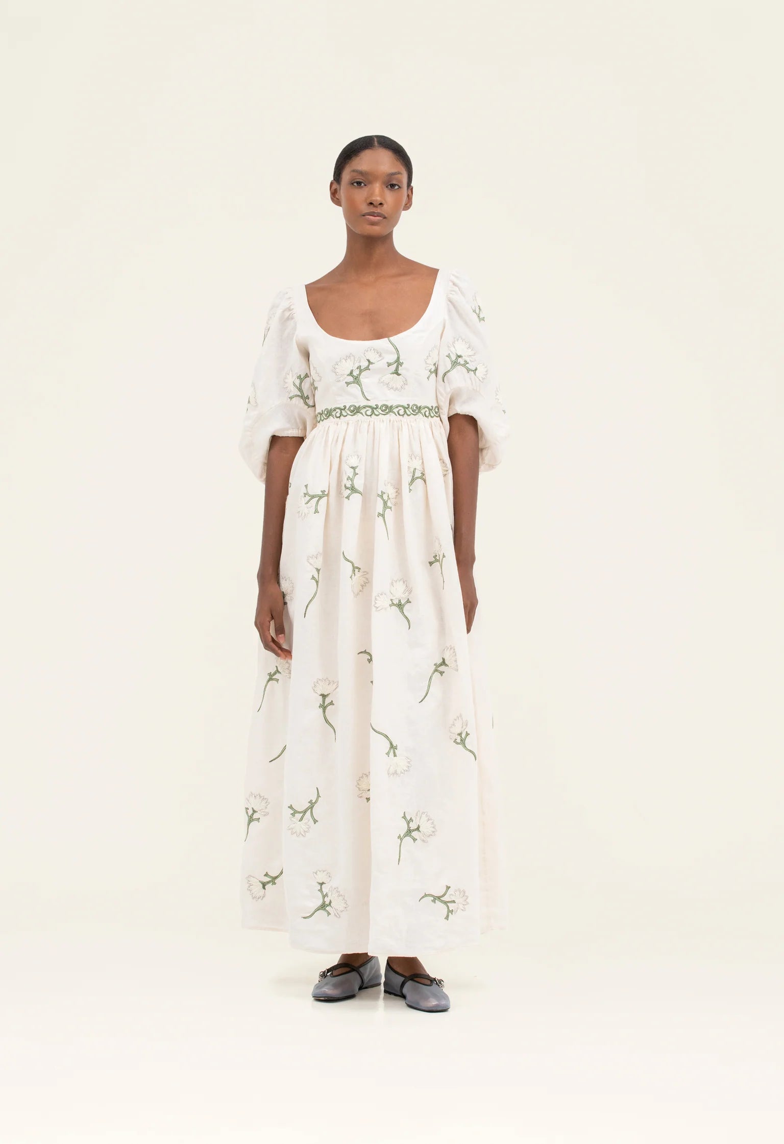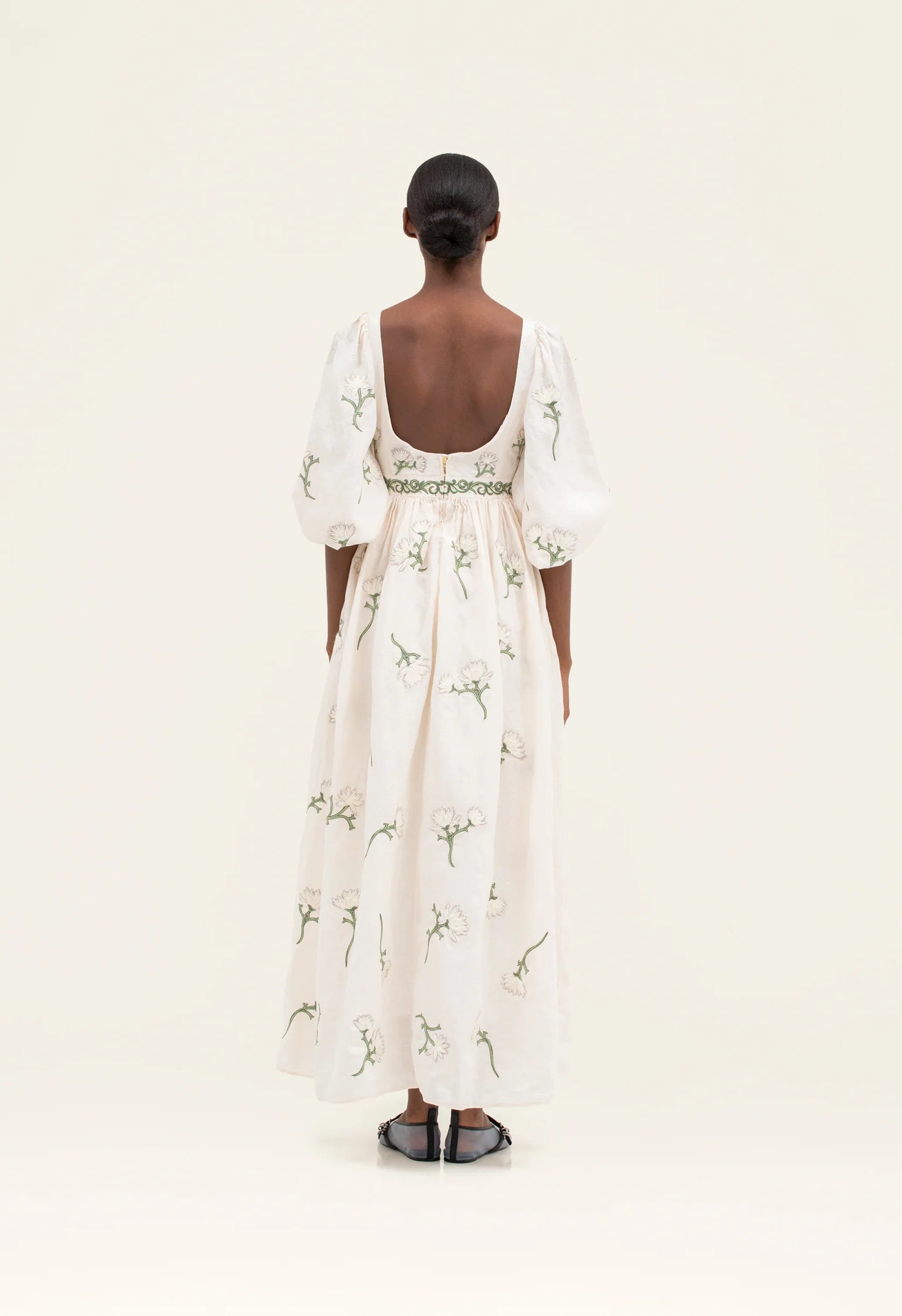 Con mangas abullonadas ultrafemeninas, un precioso estampado floral y exclusivos detalles bordados a mano, nuestro vestido maxi 'Viviane Soledad' es perfecto para reuniones de mediodía y veladas a la luz de la luna. Esta prenda tiene un cierre de cremallera oculta en la parte trasera. • Totalmente bordado • Modelo continuativo • Largo maxi • Mangas abullonadas • Incluye forro • Cremallera oculta en la parte trasera