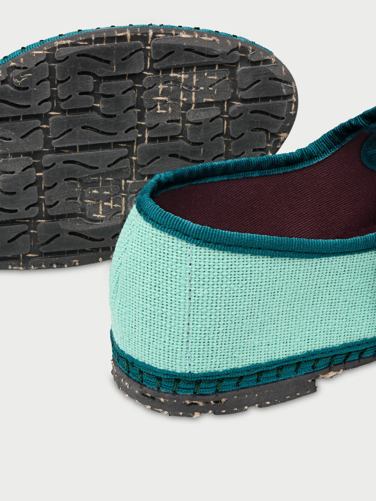 Material:Exterior 100% lino. Interior 100% Algodon Organico con tratamiento antibacteriano. Suela hecha de caucho reciclado de neumaticos de bicicletas